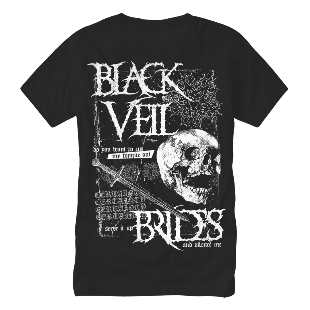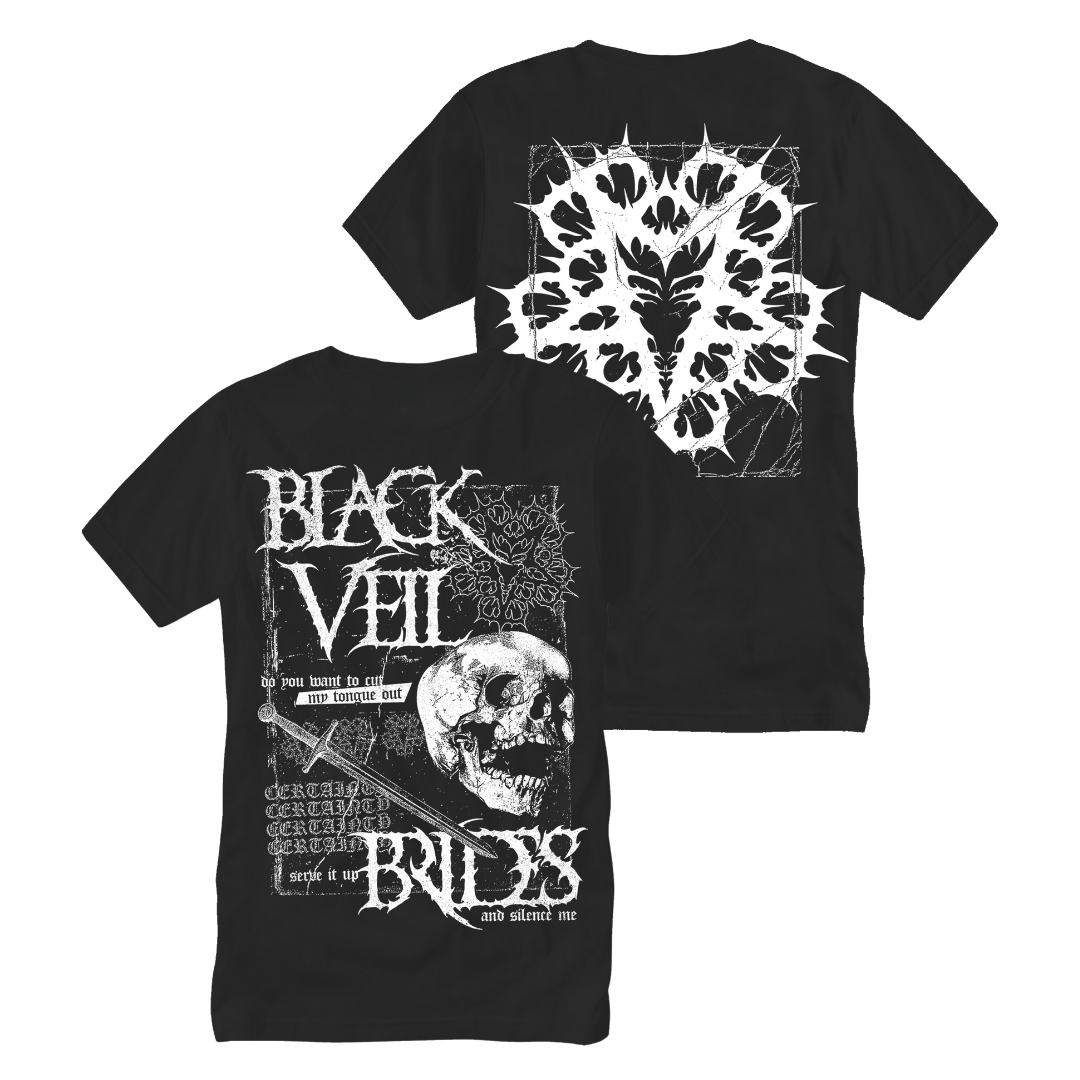 Cotton unisex black t-shirt. Certainty lyric print on front, logo on back.